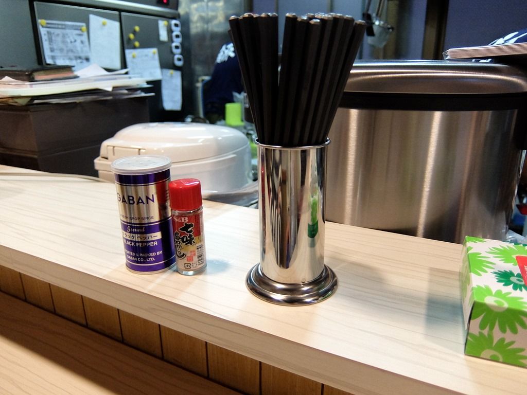 卓上調味料は、GABANブラックペッパー、S&B七味唐辛子。