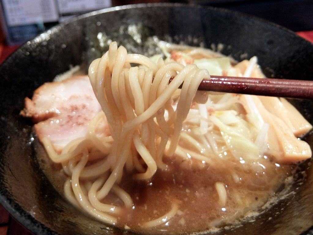 麺は、菅野製麺所の中太ストレート。 もっちりとした麺で、個性的なスープを受け止める力があります。