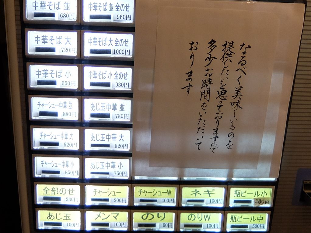 中華そば 並680円がベースメニュー。大・小といった麺量の違いと、トッピングバリエーションでラインナップを構成。オーダーは、券売機先頭左端の「中華そば」で。