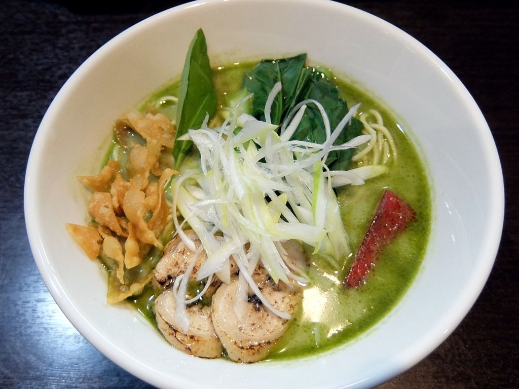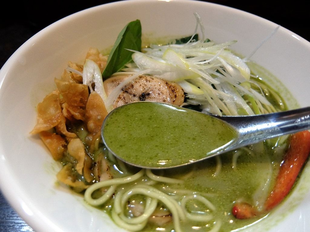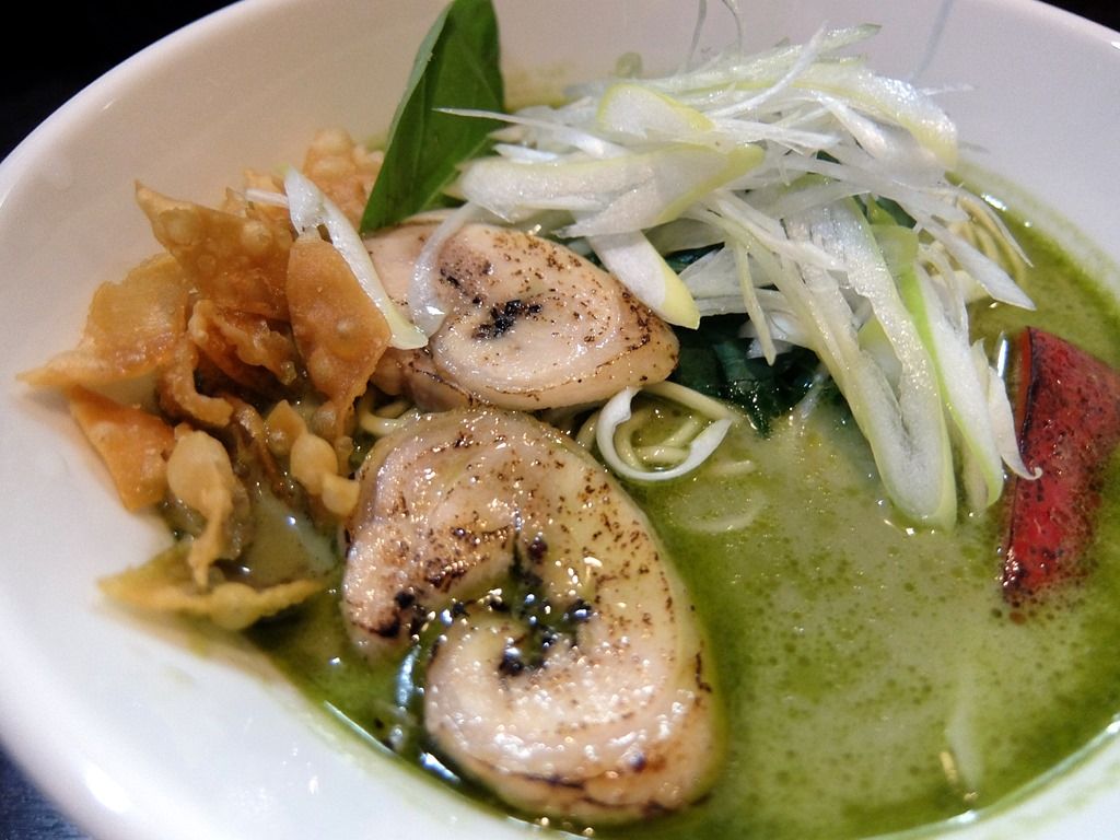 スープは、少しとろみのあるグリーンカレーのスープカレー仕立て。
