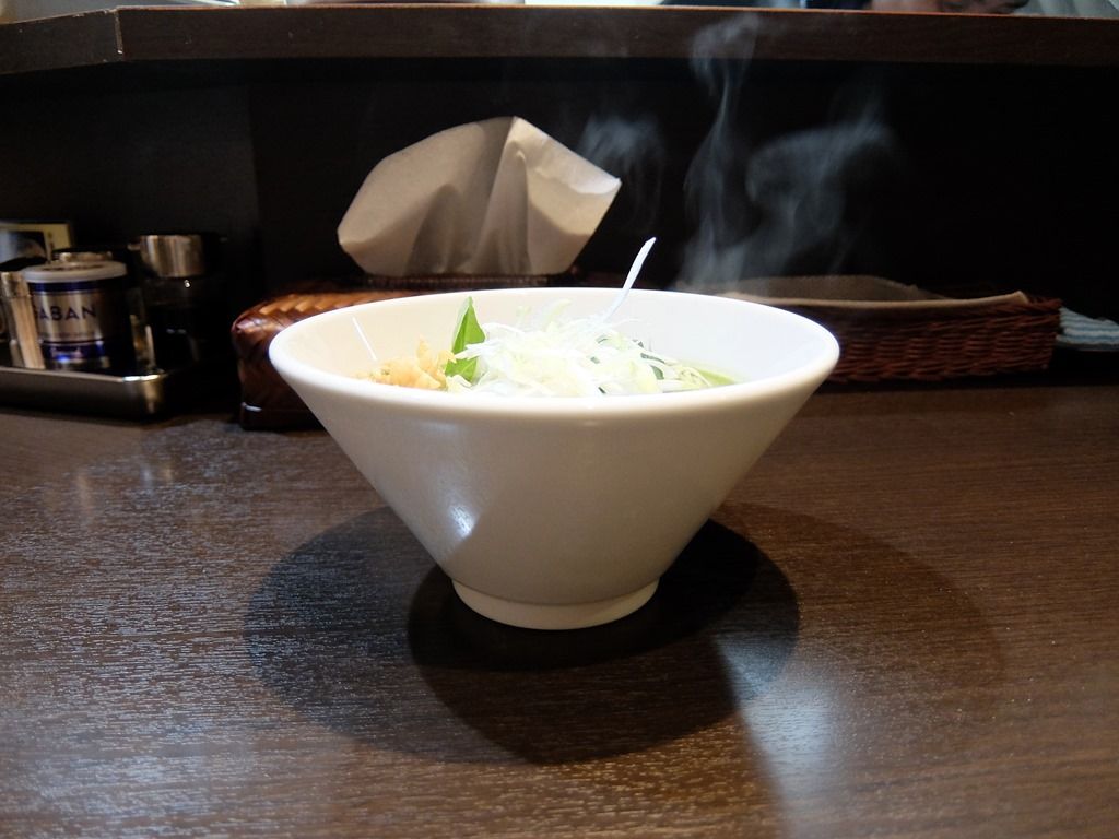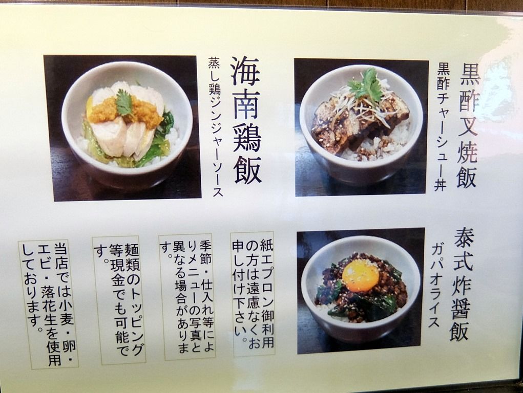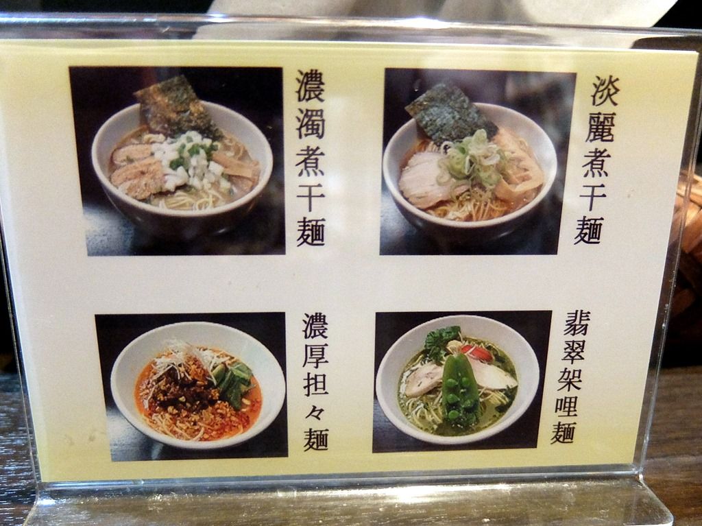メニューTOP3は、鍛錬・濃厚の煮干と担々麺ですが、ショップのキャッチが「Asian Soba noodles」な事から、オーダーは、「翡翠架喱麺」にしました。