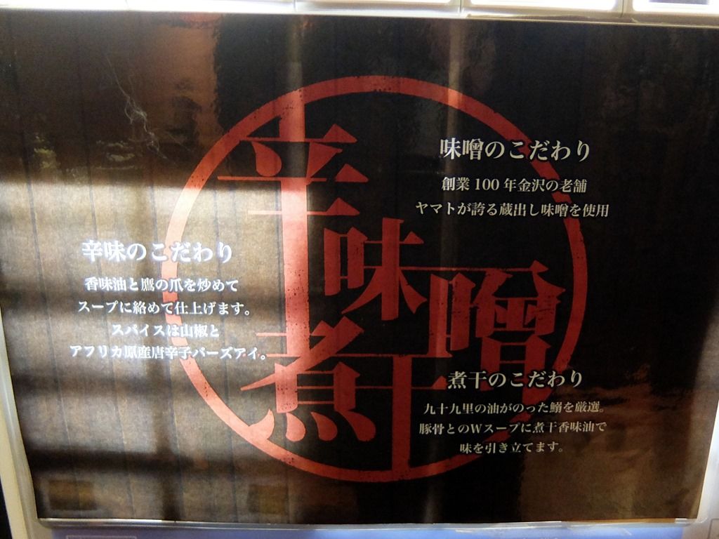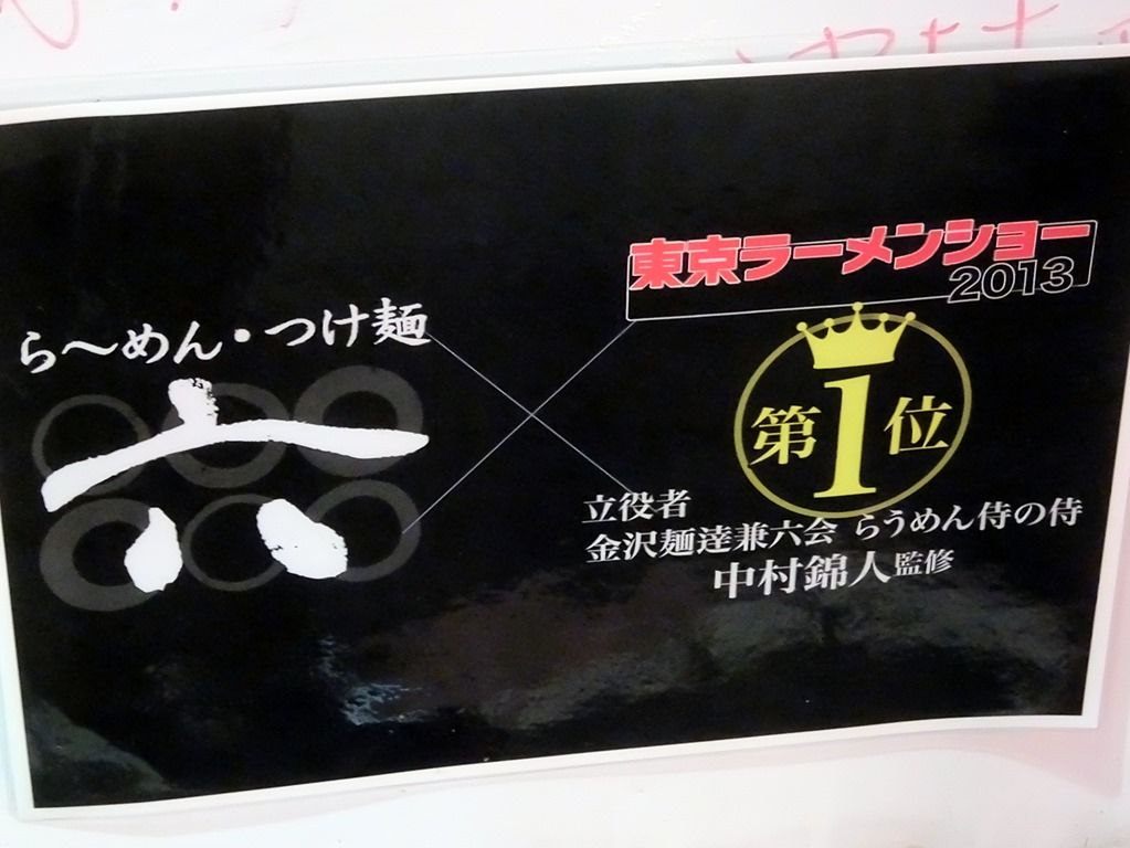 リニューアル後のメニュー「辛味噌煮干」は、六と、東京ラーメンショー2013売上1位(加賀麺達兼六会)の立役者 中村錦人氏とのコラボにより生まれたそうです。