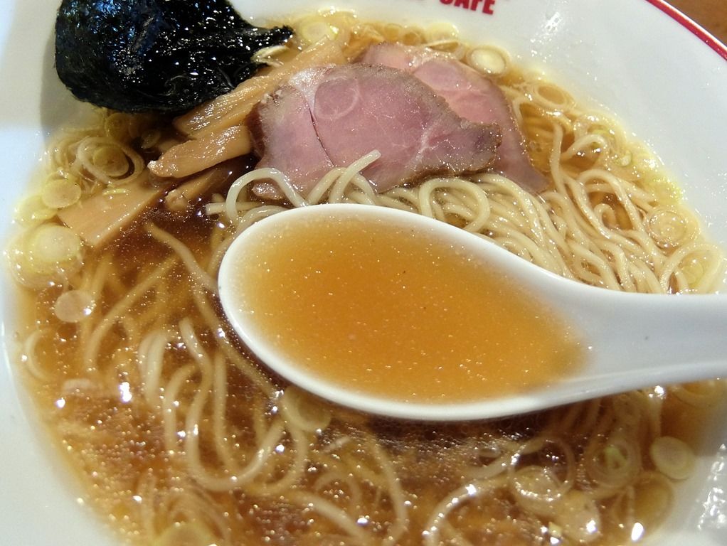 スープは、さらさらの清湯醤油味。 鶏ベースで魚介が香る、淡麗清湯醤油らーめんの王道を往くスタイル。