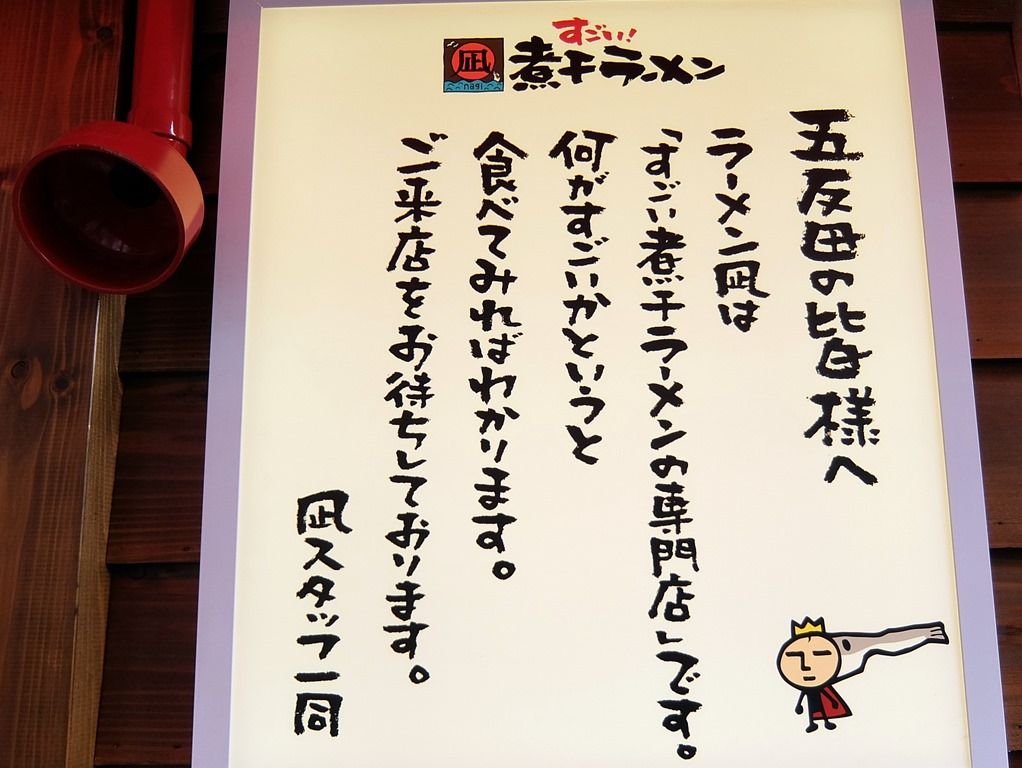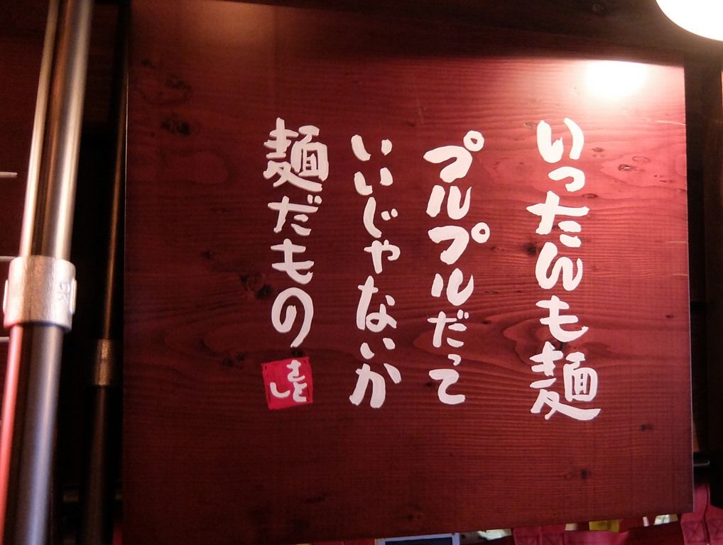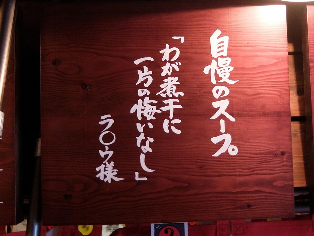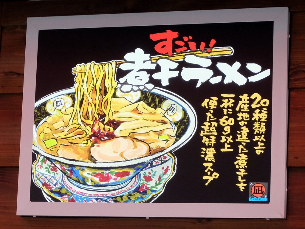 煮干しが強烈って事で、入口の上には「煮干が嫌いな方はご遠慮ください」とでっかく表示。