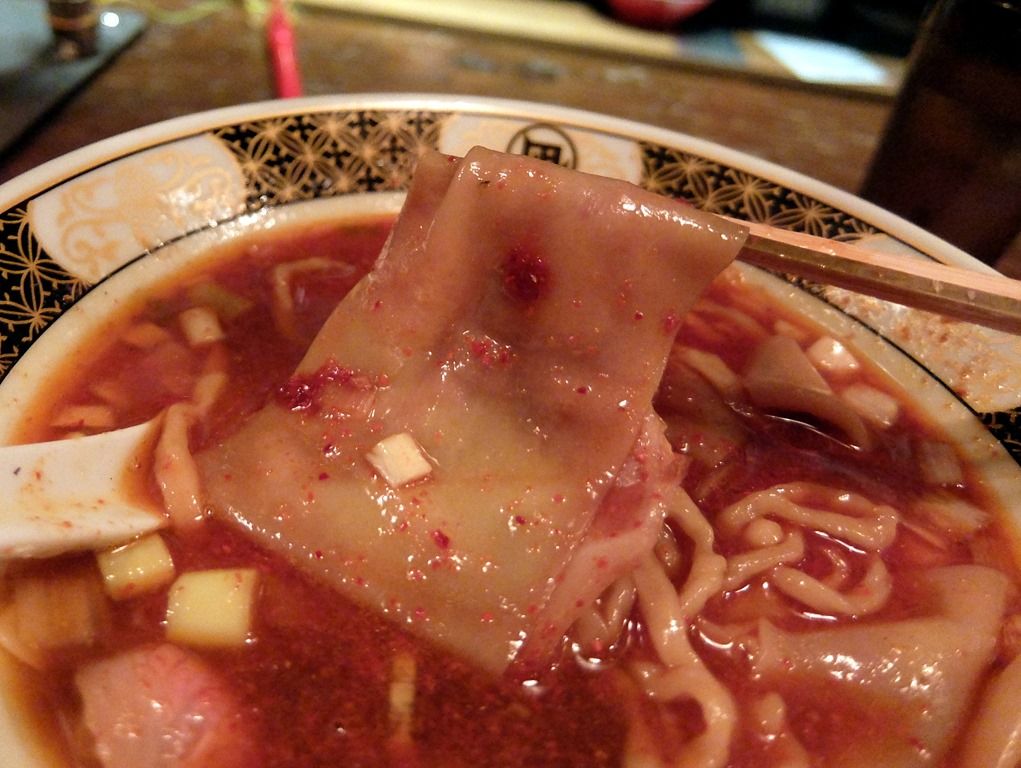 辛味の「海の幸銀だれ」の他に、真っ赤な唐辛子粉が一麺にかかって、ビジュアル的にはデフォの1辛が良さげ^^;