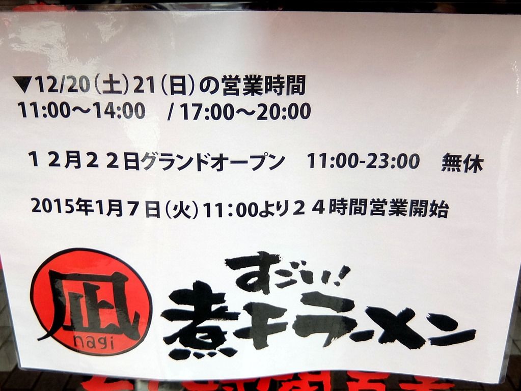 2014年12月20日、本日プレオープンの新店「すごい!煮干ラーメン 凪 五反田店」へ。
