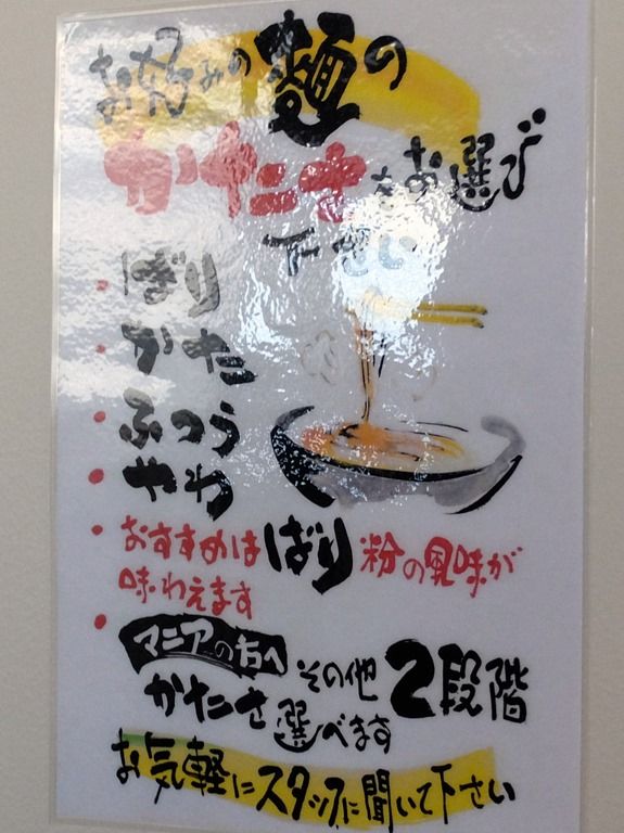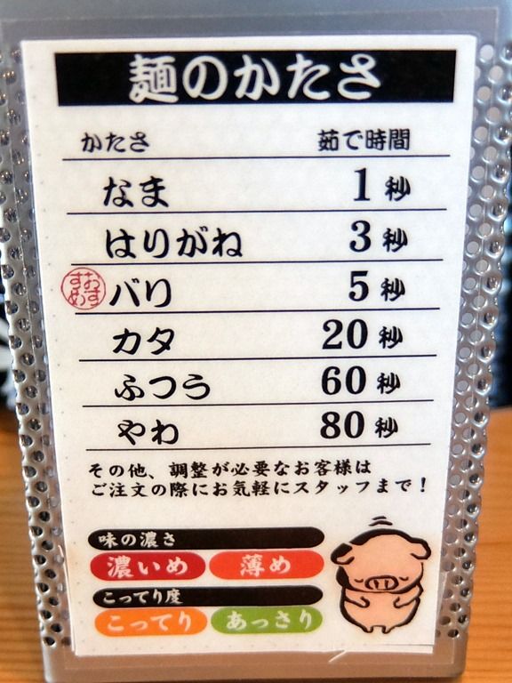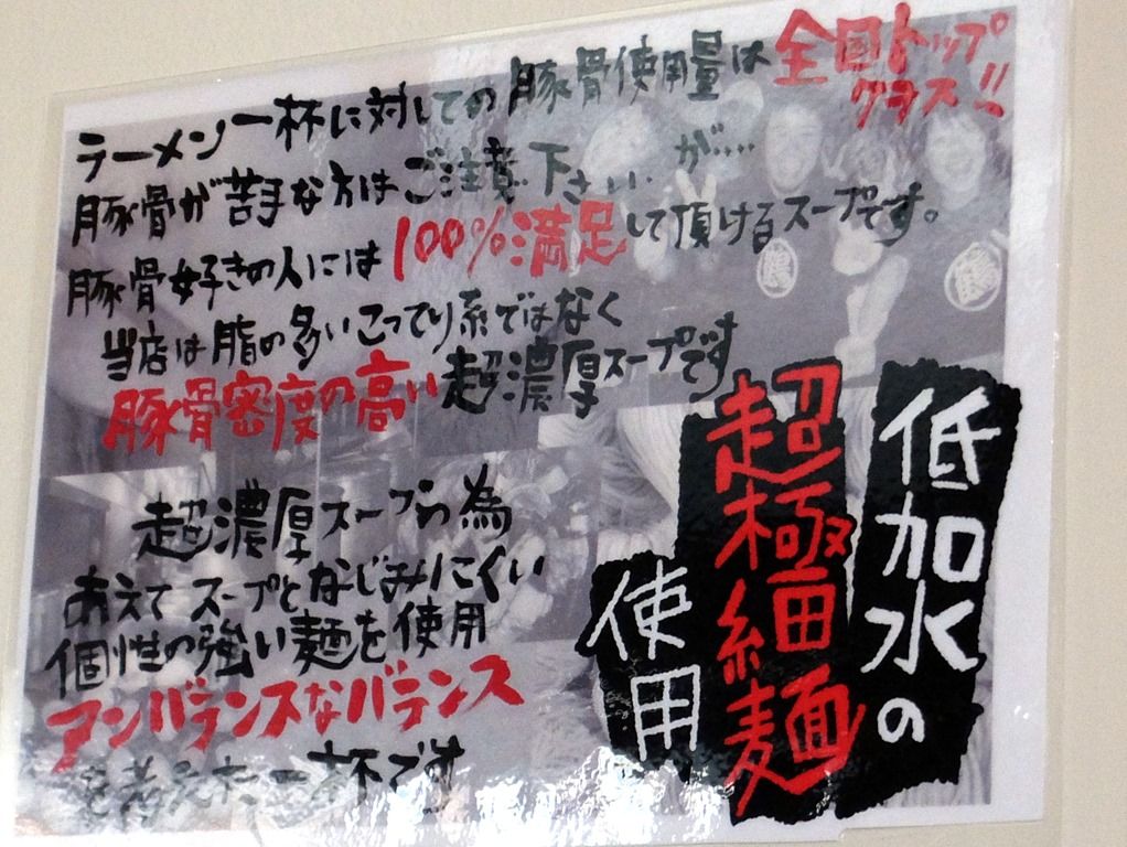 店頭及び卓上掲示の薀蓄。豚骨の量は普通の1.5倍とか。