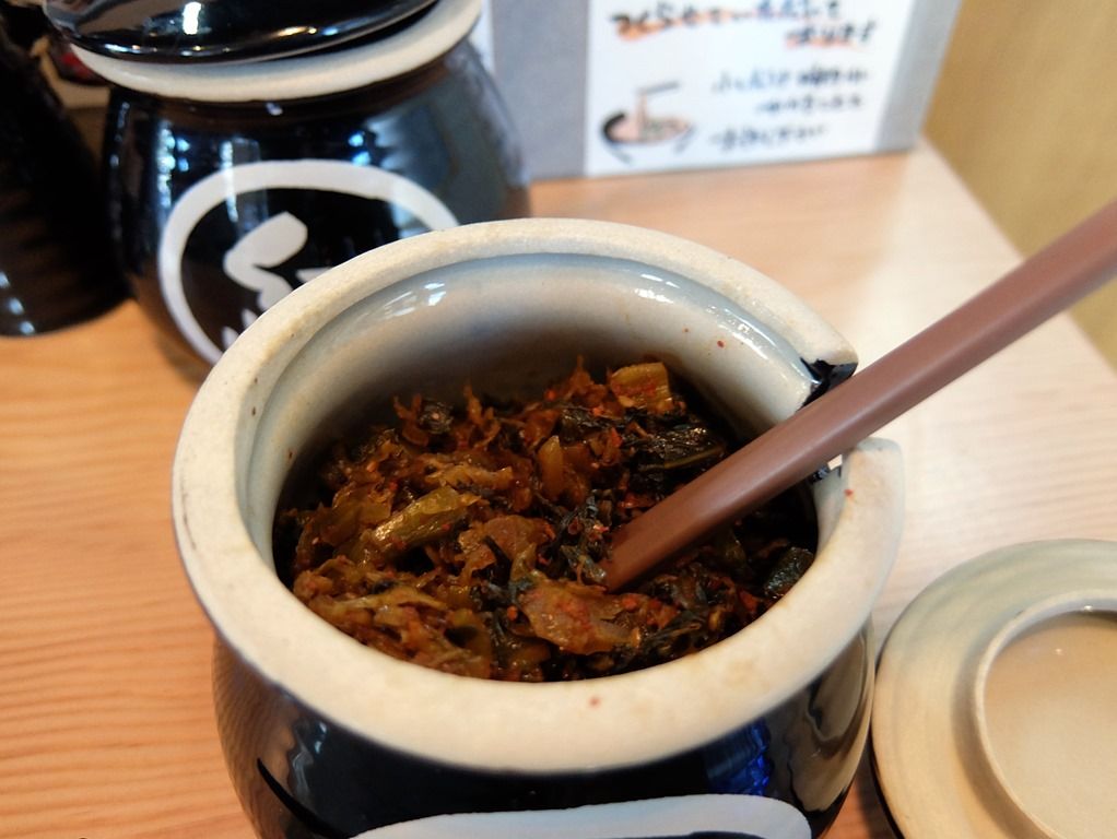 途中で、卓上のすり胡麻と辛子高菜を投入。