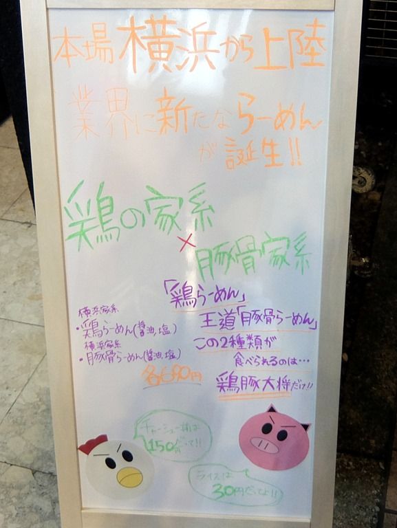 2014年12月17日オープン。100%鶏スープで作る鶏の家系と、通常の豚骨スープで作る豚骨醤油の家系の両方を提供する店。