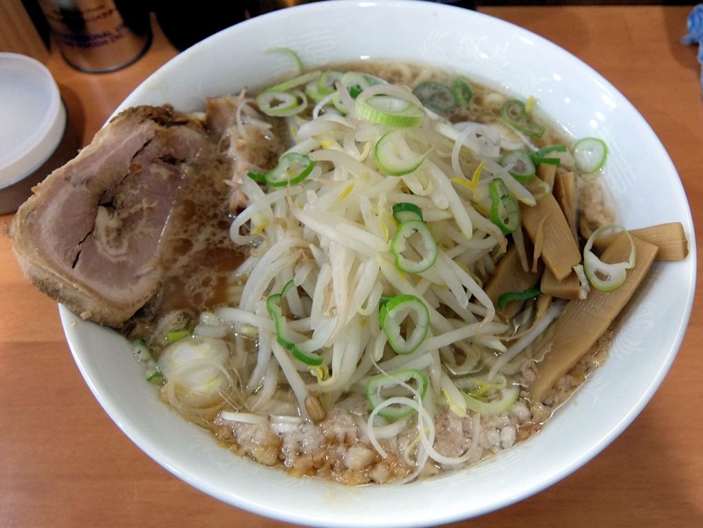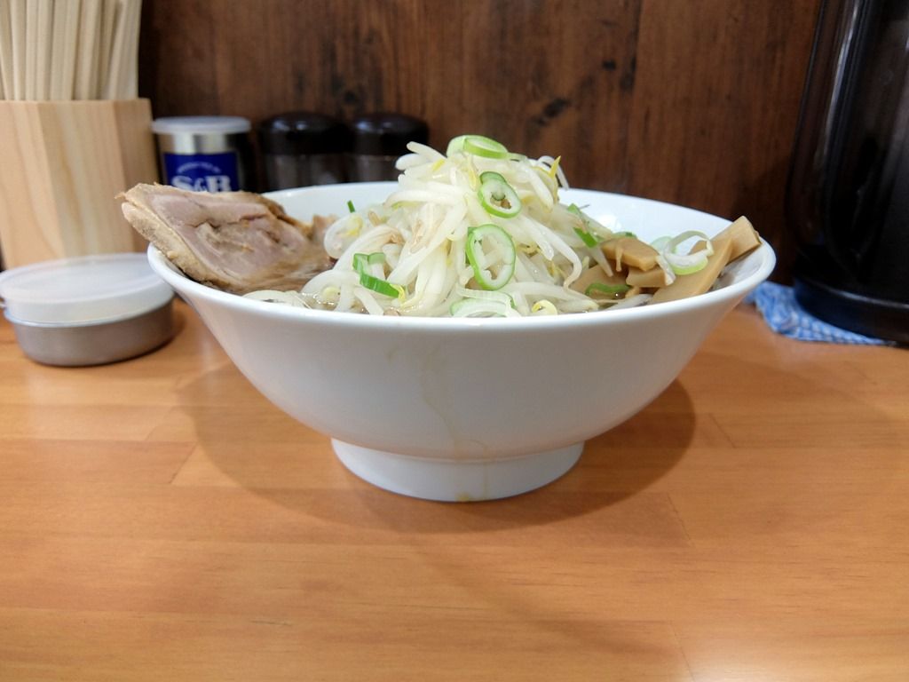 具は、チャーシュー、きざみネギ、ゆでモヤシ、メンマ。