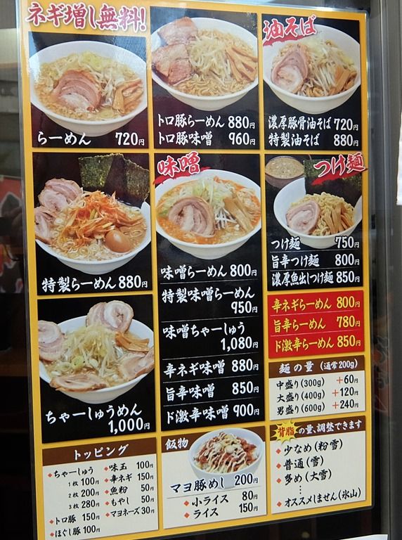 後で気づいたのですが、1枚のメニューポスターだけ「ネギ増し無料!」となってました。