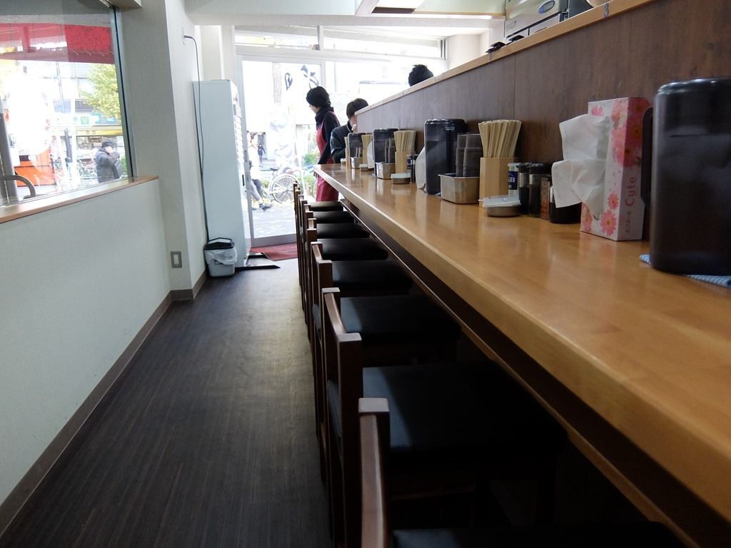 店内は、厨房を囲む奥に長いL字型カウンター12席。