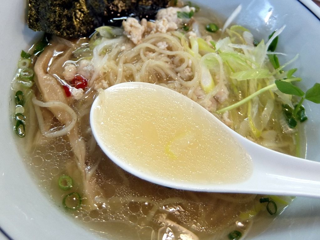 スープは、さらさらの清湯塩味。 「正油SOBA」の牛が躍動するスープに対して、こちらは昆布の旨味が加味されて、より和風なシフト。