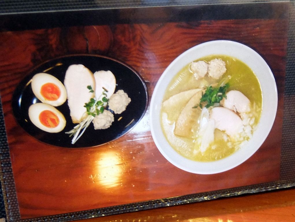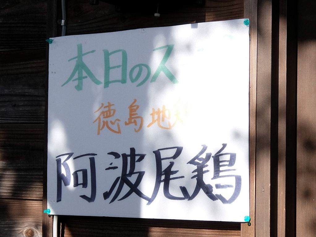 店頭には。「本日のスープ 徳島産 阿波尾鶏」の掲示。 事前情報によると、青森産シャモロックのスープが美味しいと評判でしたので、幸か不幸か、この日のスープはスペシャルバージョン(^_^;)