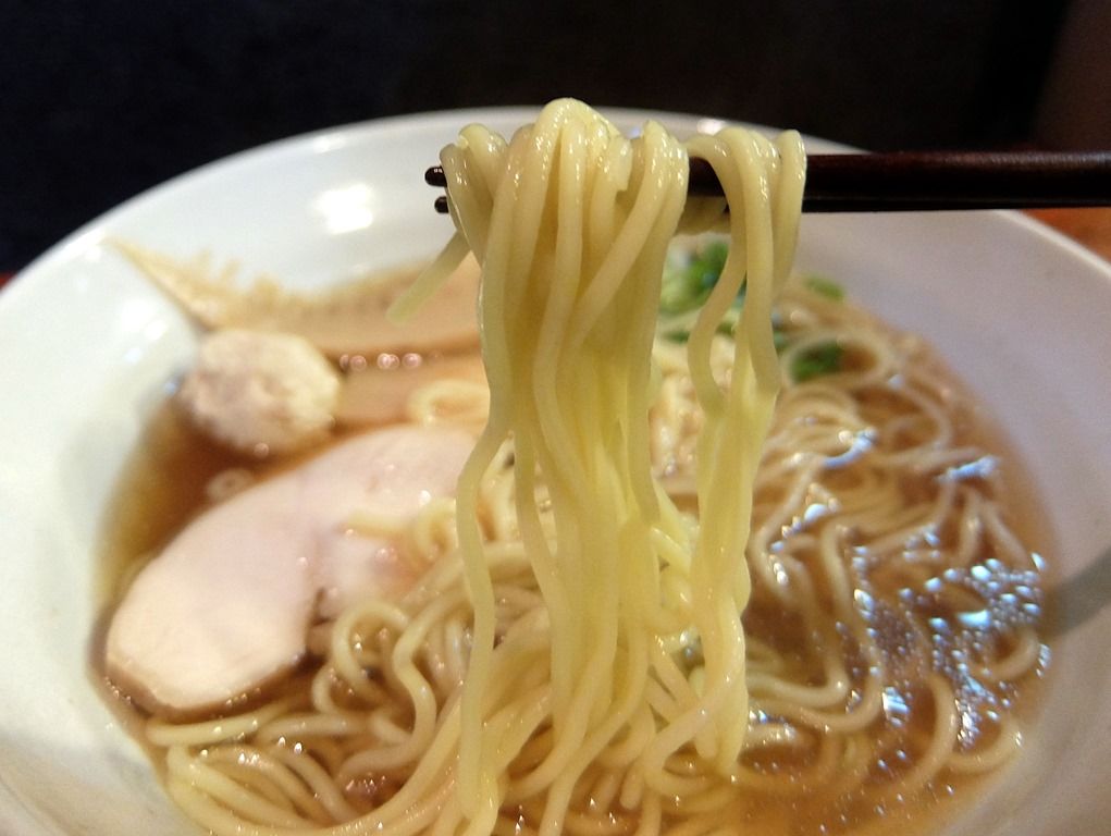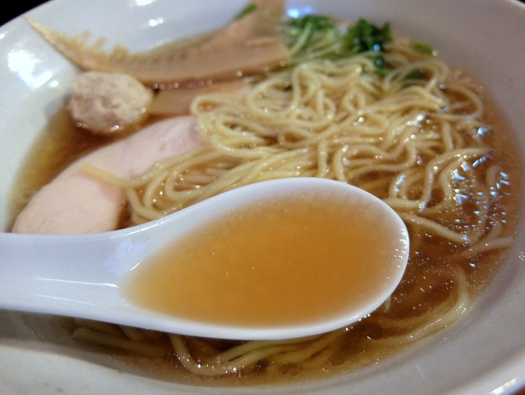 スープは、さらさらの清湯醤油味。 予想外に生姜がビシッと効いていて、思わずビックリ!