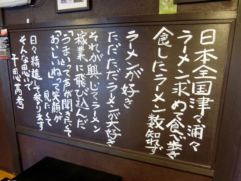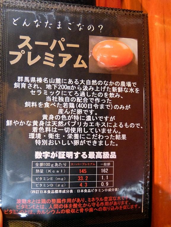 最終ページは、「スーパープレミアム(卵)」の説明。 小上がり壁面には、ラーメンに関する想いが綴られています。