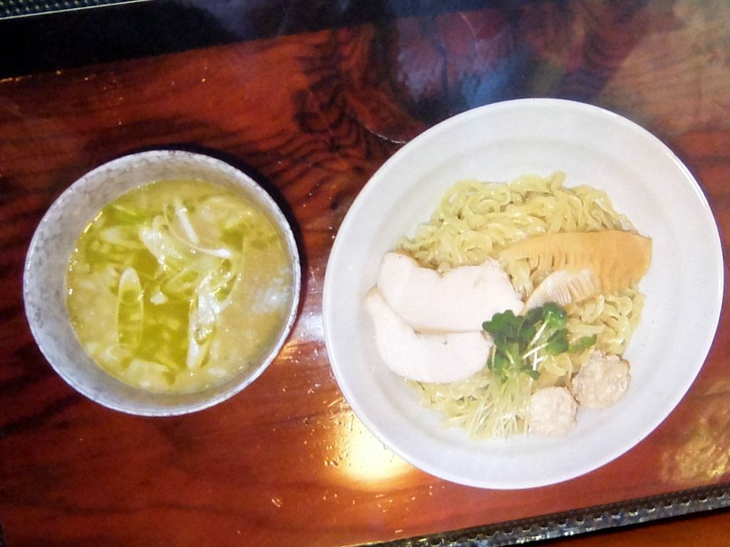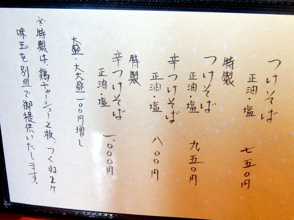 「つけそば」画像。 つけそば 正油・塩 各750円、辛つけそば 正油・塩 各800円、