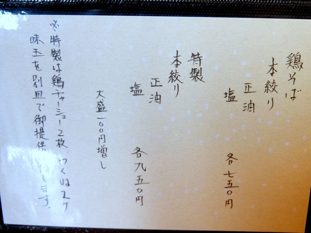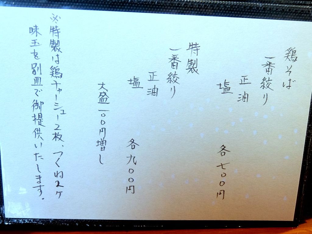 主なメニューは、鶏そば 一番絞り 正油・塩 各700円、