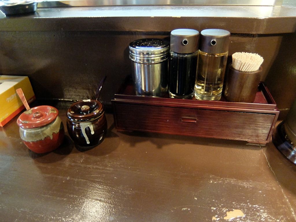 卓上調味料は、胡椒、醤油、酢。
