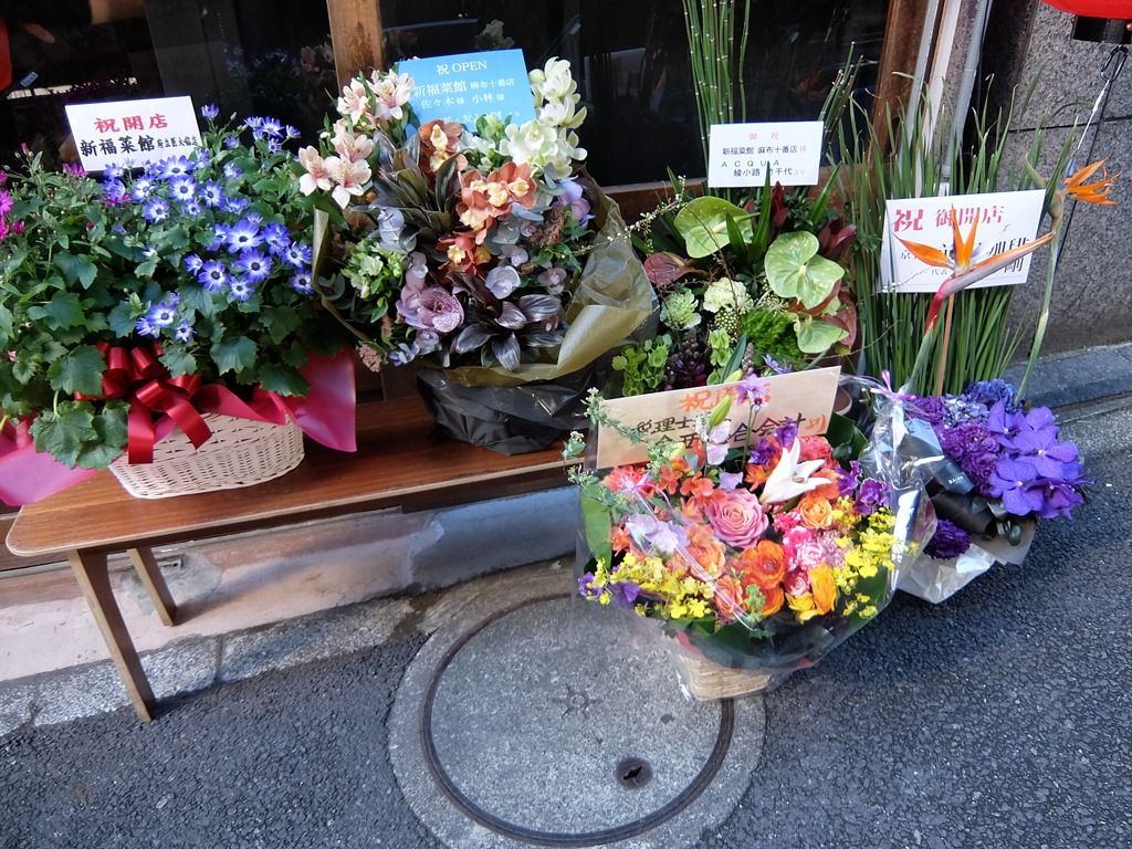 店頭には開店祝花。