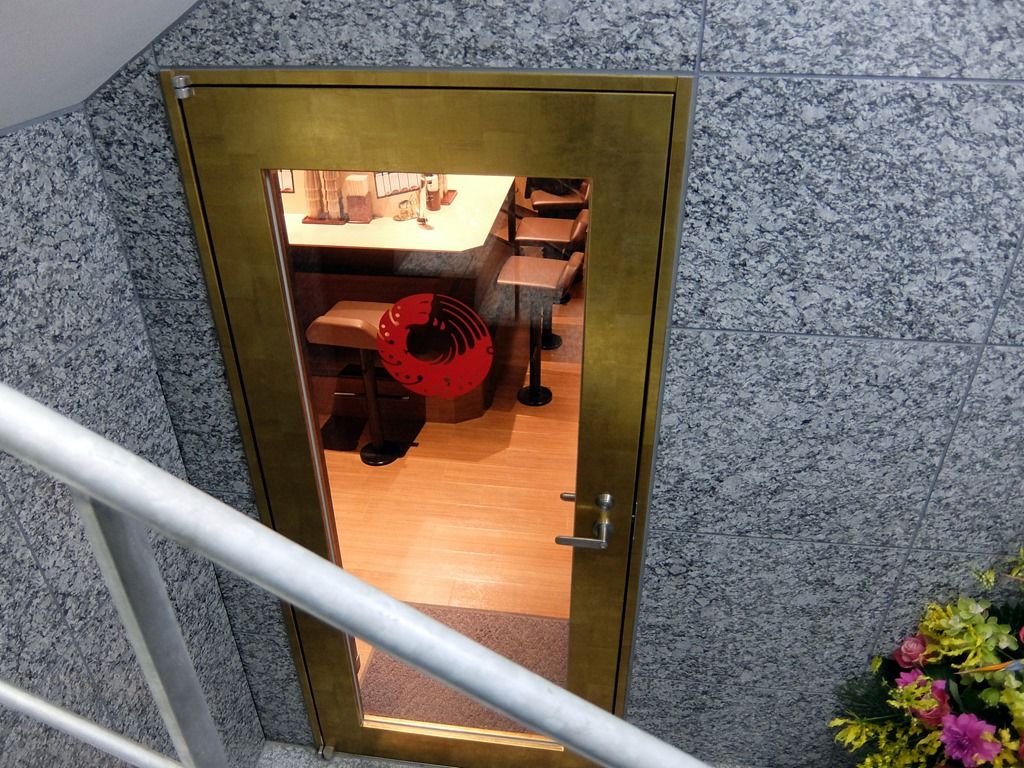 地下1Fなので、ビル横脇の入口から階段を降りて下へ行きます。 階段入口はちょっと分かりづらくて、「じぱんぐ」のオレンジの看板が目印。