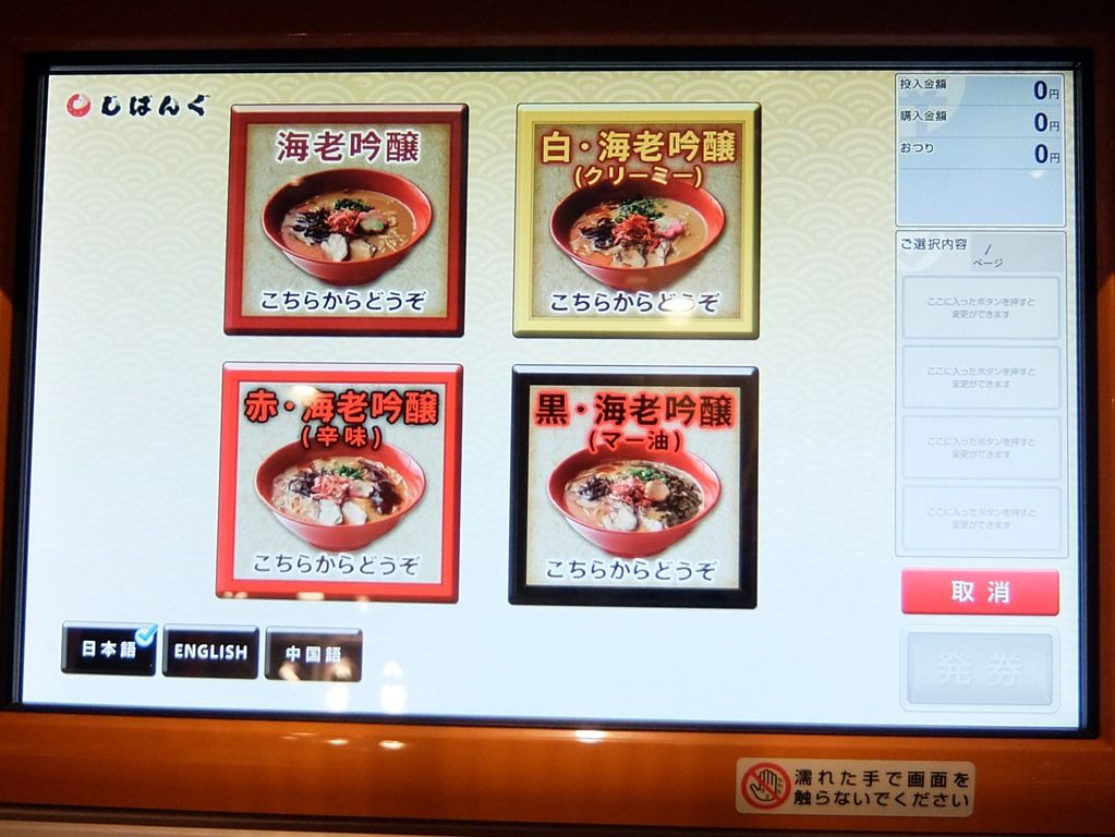 階段降りきった所に店舗入口。 入店すると、まず最新型タッチ式券売機で食券購入です。