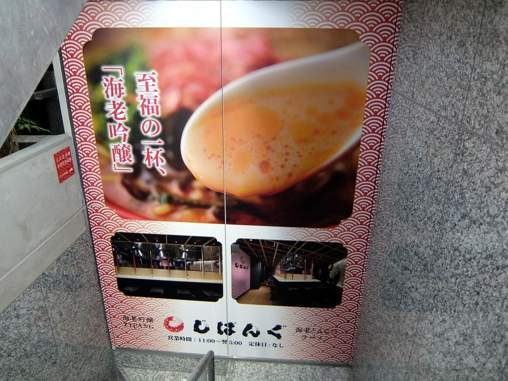 階段降りると、すぐの壁面にレンゲとスープの巨大看板掲示。