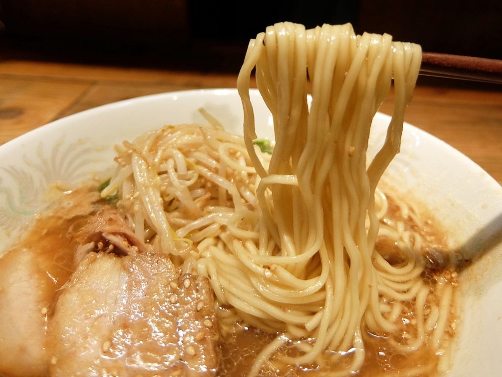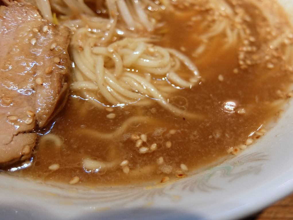具は、チャーシュー、メンマ、モヤシ、ねぎ、多めのゴマがアクセント。