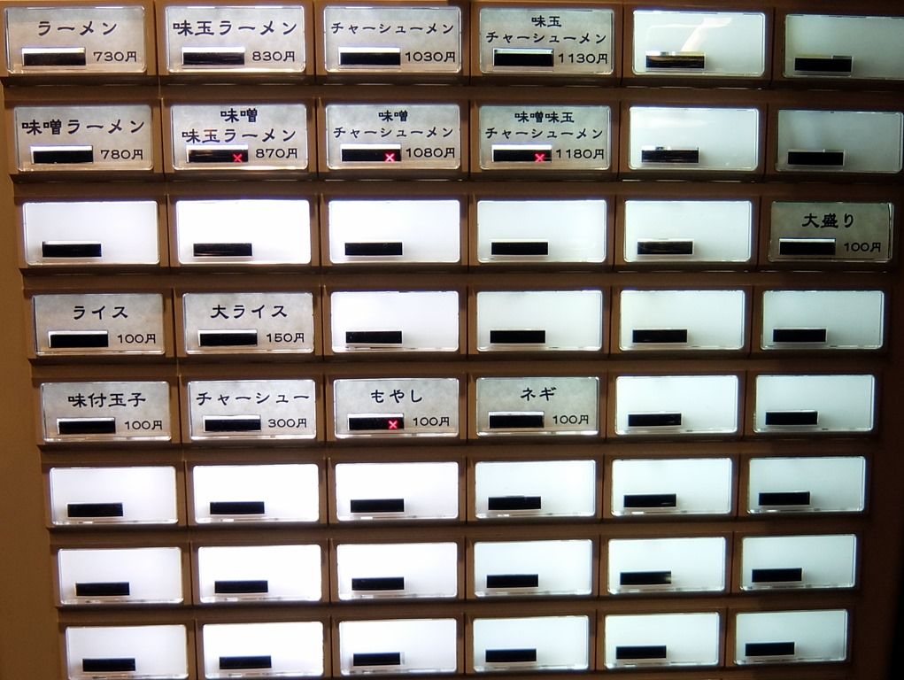 主なメニューは、ラーメン730円、味噌ラーメン780円はまだ「X」表示。
