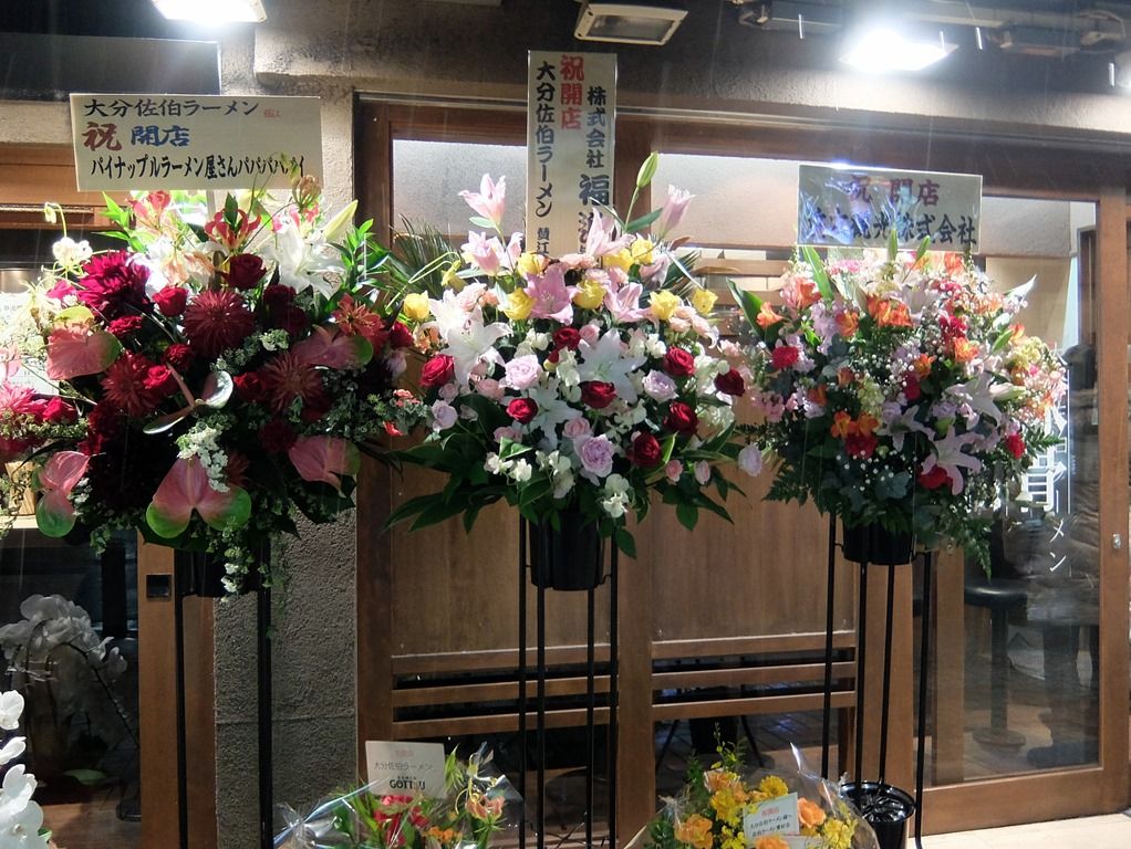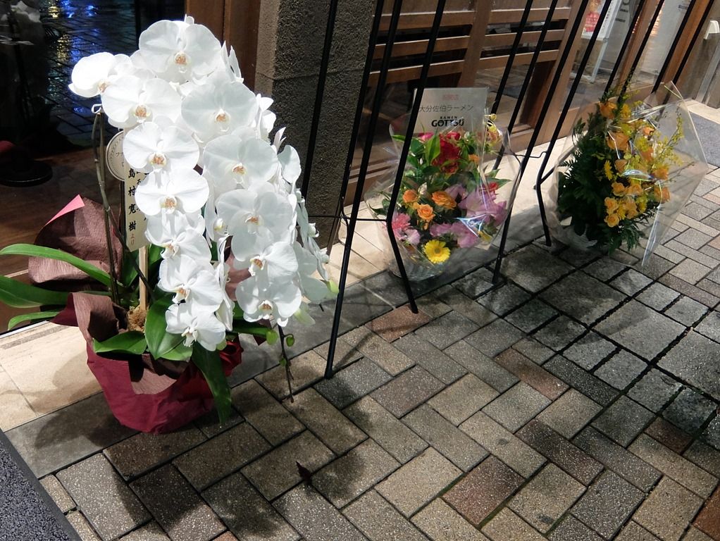 店頭には開店祝花。