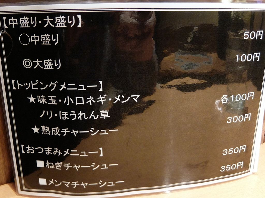 黒板メニューならぬ、壁面掲示の「本日限定メニュー」もあり。 この日は、全部のせラーメン980円、特製白髪ネギ150円、小ライス100円。