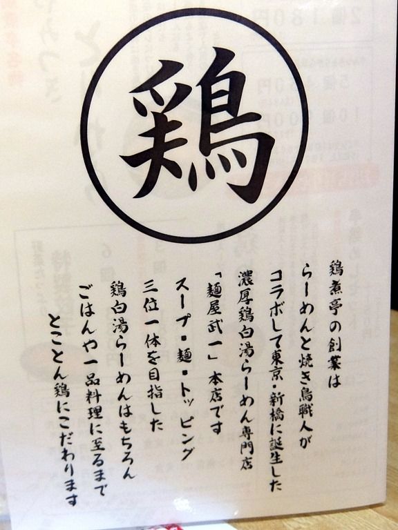 2014年10月28日オープン。鶏だけに飛ぶ鳥を落とす勢いの麺屋武一@新橋の系列^^;