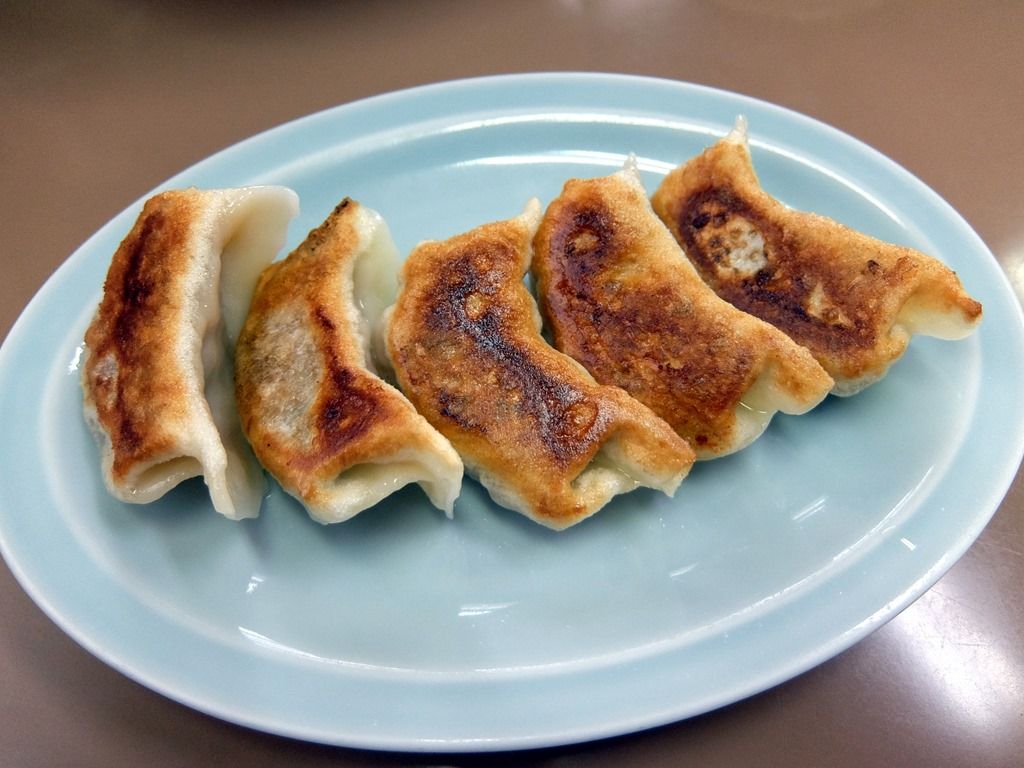 「餃子」。皮が多分自家製でモッチモチ。中はおつゆたっぷりでジューシー。更に一粒一粒がデカイです!個人的にはややゴマ油強めな感じでしたが、十分許容範囲でしょう。美味しい!