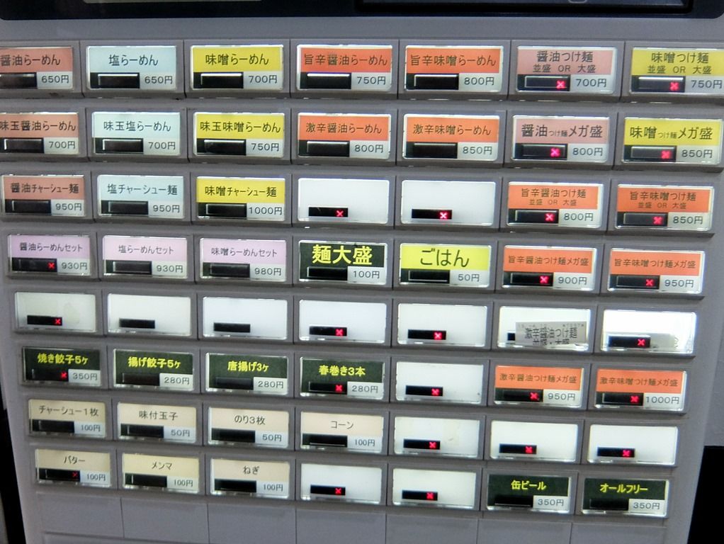 醤油・塩・味噌・つけとフルラインナップなメニュー構成。オーダーはとりあえず先頭左端で。