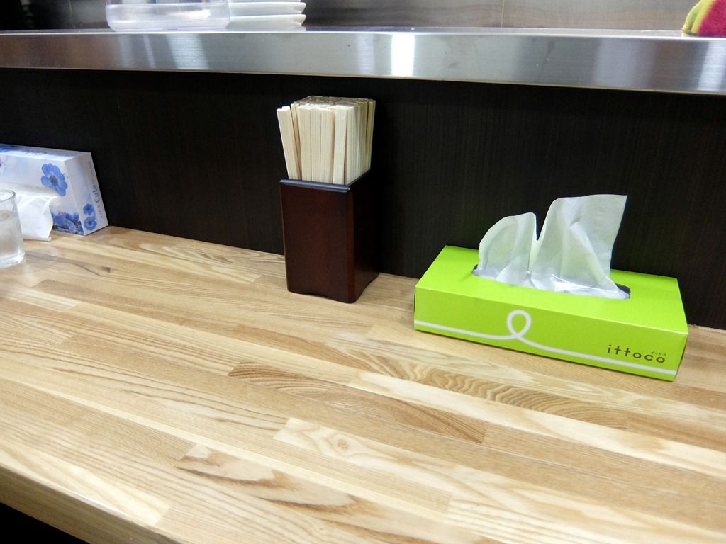 卓上調味料は無し、と思ったら手の届かない遠くの方に発見。