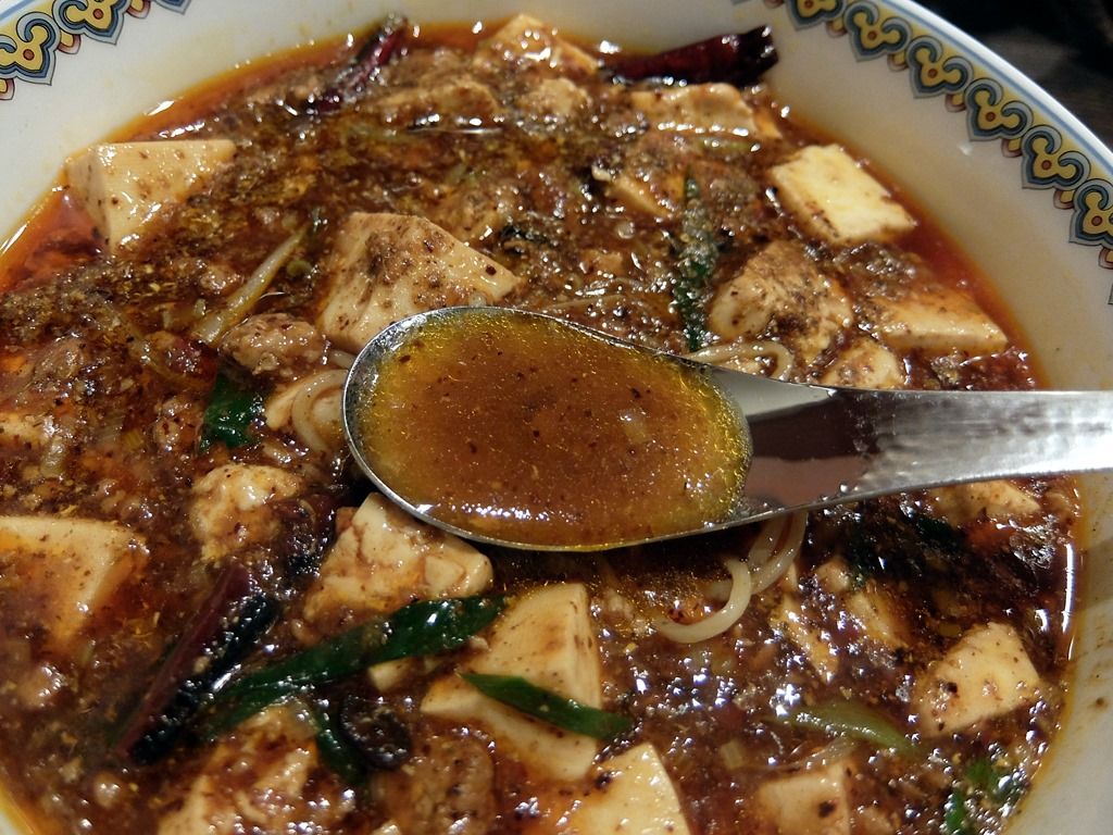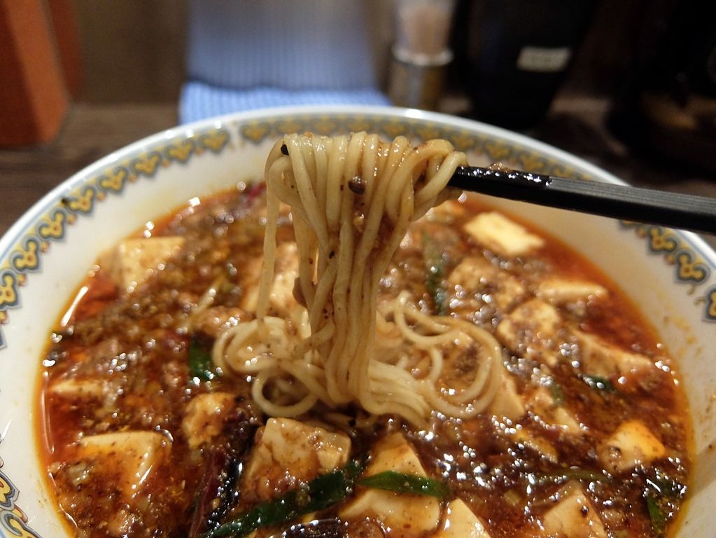 はつがい麻婆豆腐店のは麻婆豆腐の中に麺が入ってる感覚で、こちらは汁麺に麻婆豆腐トッピングスタイルですが、麻婆豆腐とスープの一体感が凄まじく、はつがい麻婆豆腐店に引けを取りません。