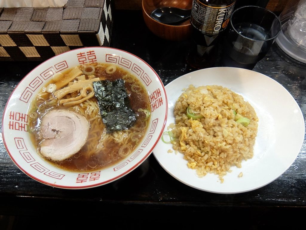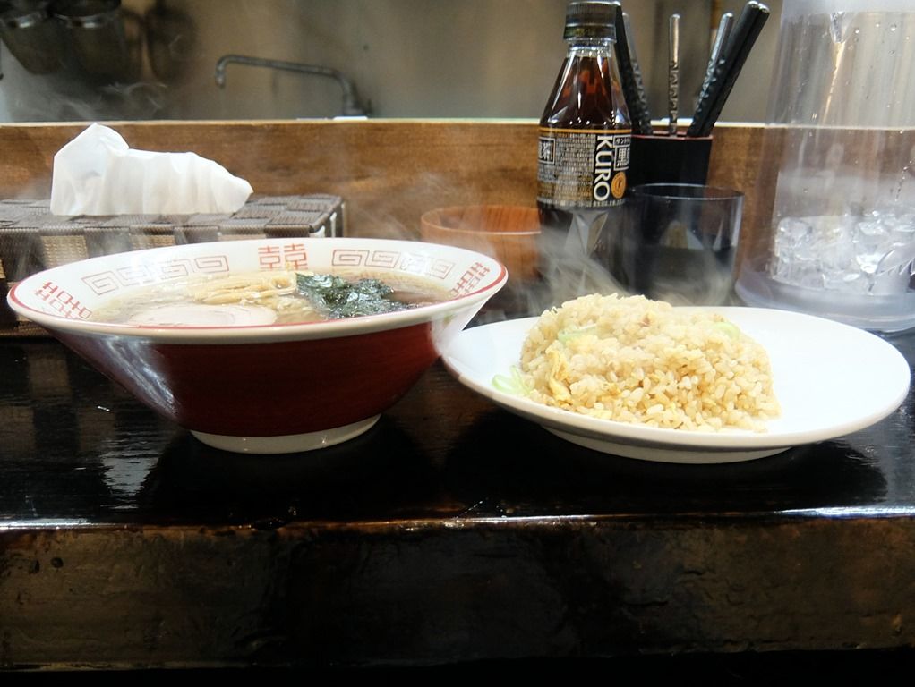 ラーメンは、縁の赤いノスラー的な丼で、一方のチャーハンはテンガロンハットを薄くした様なちょっと洋風な平皿で登場。 ラーメンのビジュアルはまんまノスラー的。