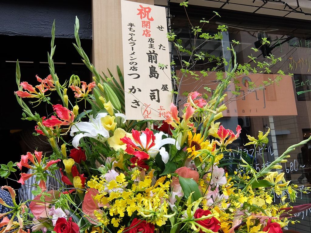 店頭開店祝花、まずは師匠の前島さんから、