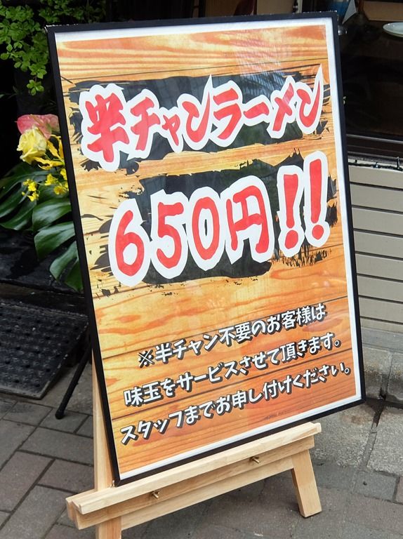 「半チャン」は不要という方には、申し出れば半チャン無し、代わりに味玉サービスという設定もあり。 オーダーは、券売機先頭左端の「(半チャン)ラーメン」にしました。