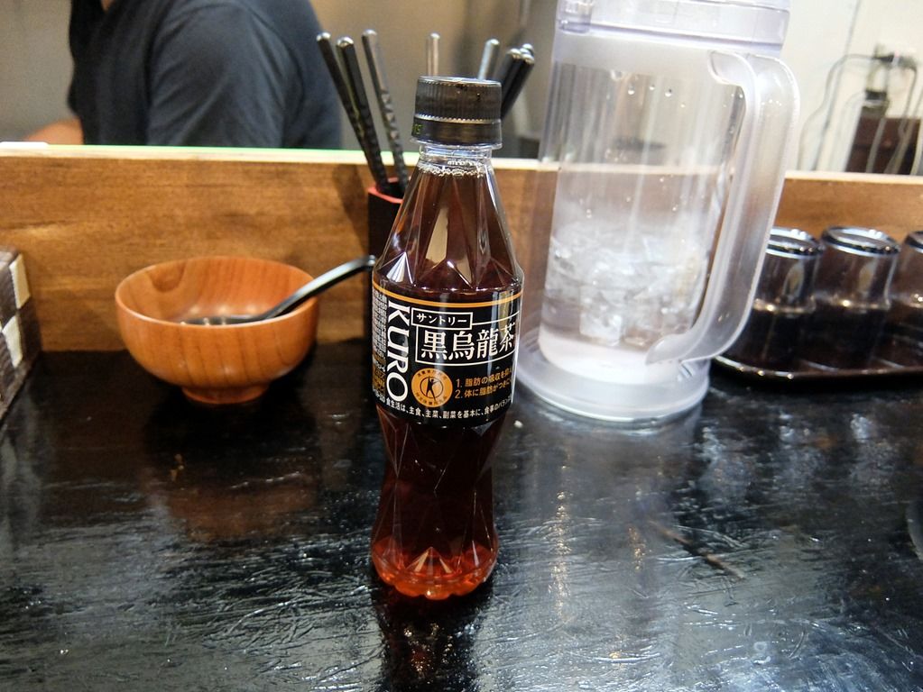 着席すると、サービスのサントリー黒烏龍茶が提供されます。