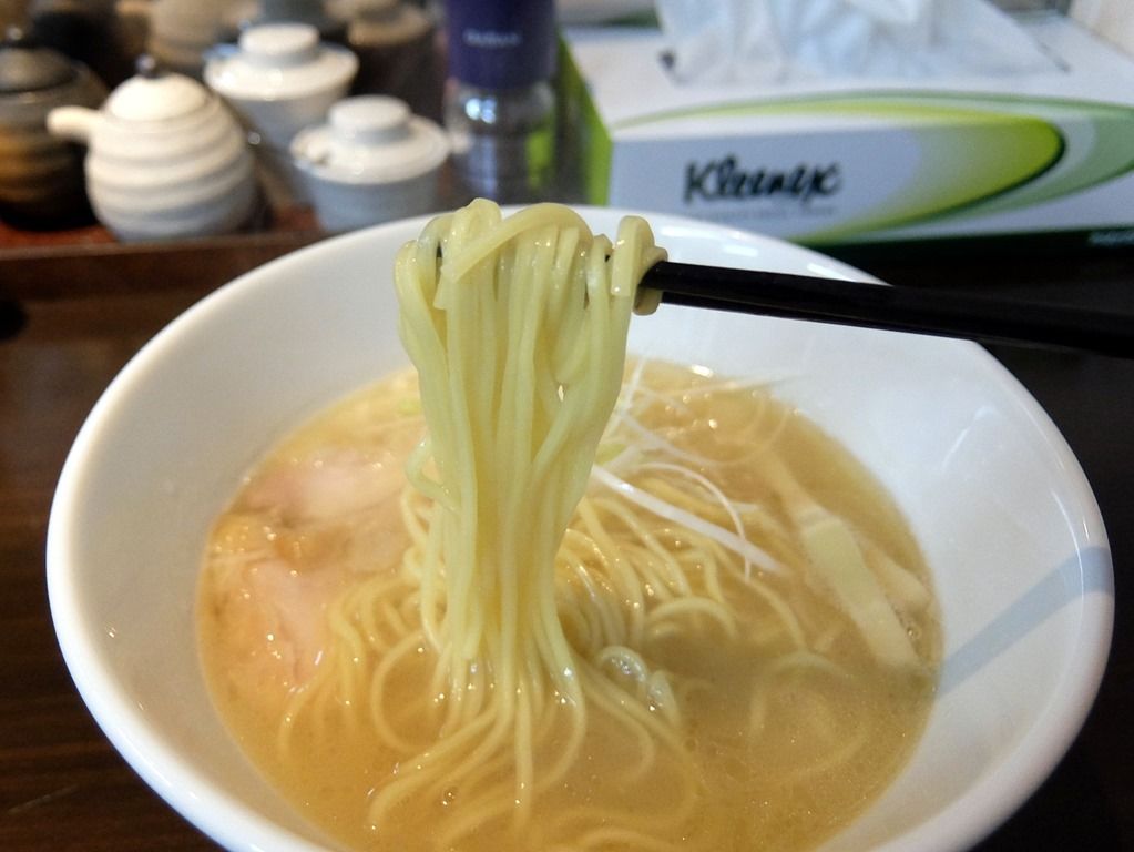 スープは、とろ~りとクリーミーな濃厚鶏白湯塩味。 鶏の癖や雑味も無く、鶏の旨味を丹念に凝縮したような味わいで美味しい!