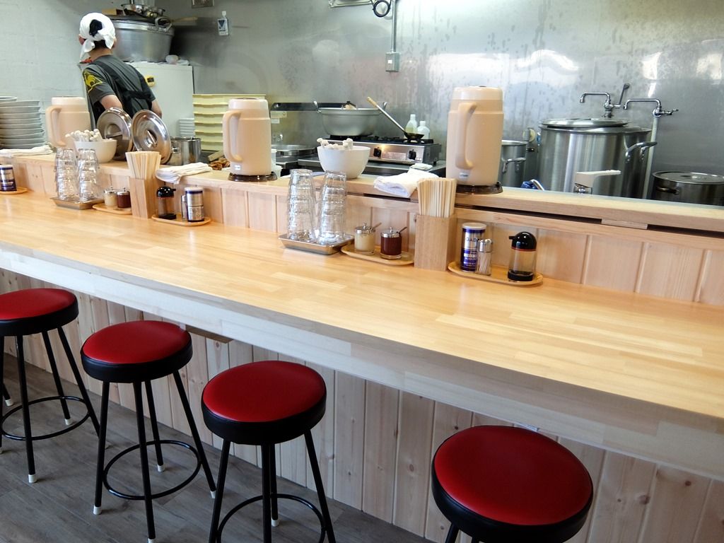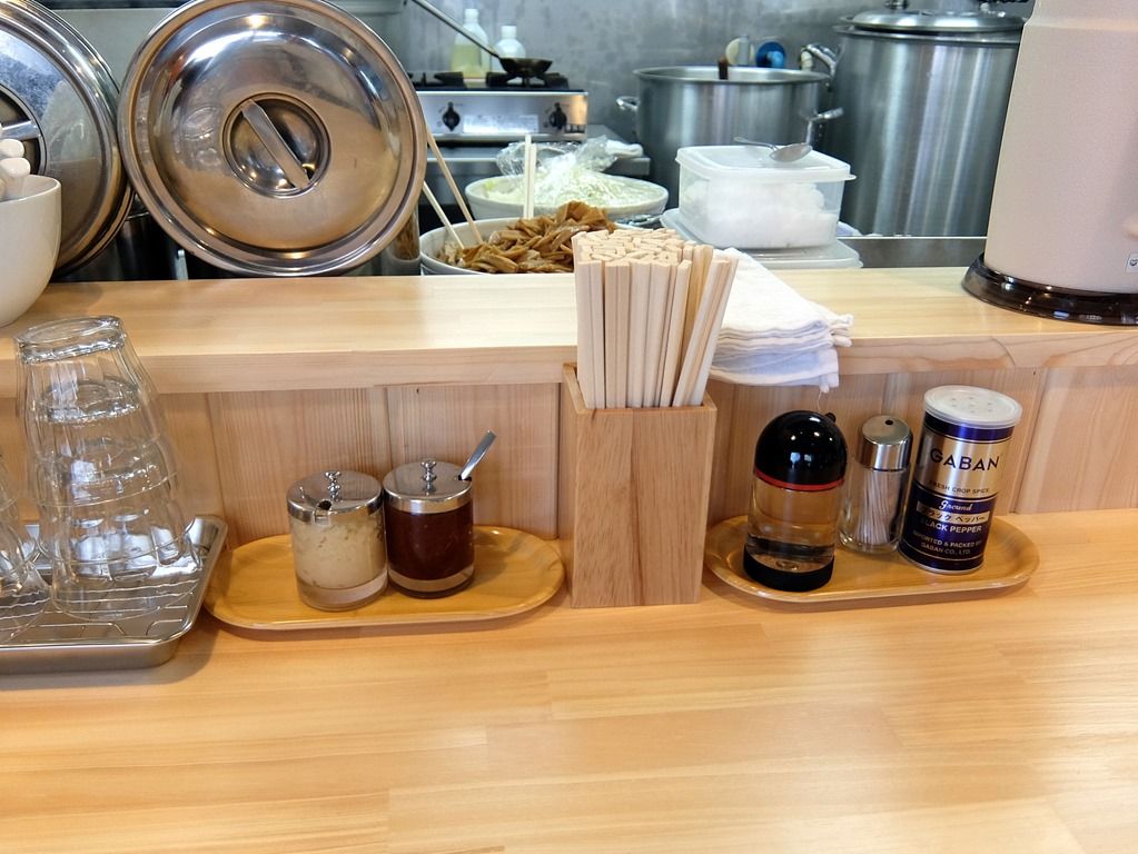 店内は、厨房前に真っ直ぐなカウンター8席。 席の後ろがだいぶ広く、背後霊的に列んでも通路は十分確保出来そうですが、中待ちは無しの方針なんですしょうね。