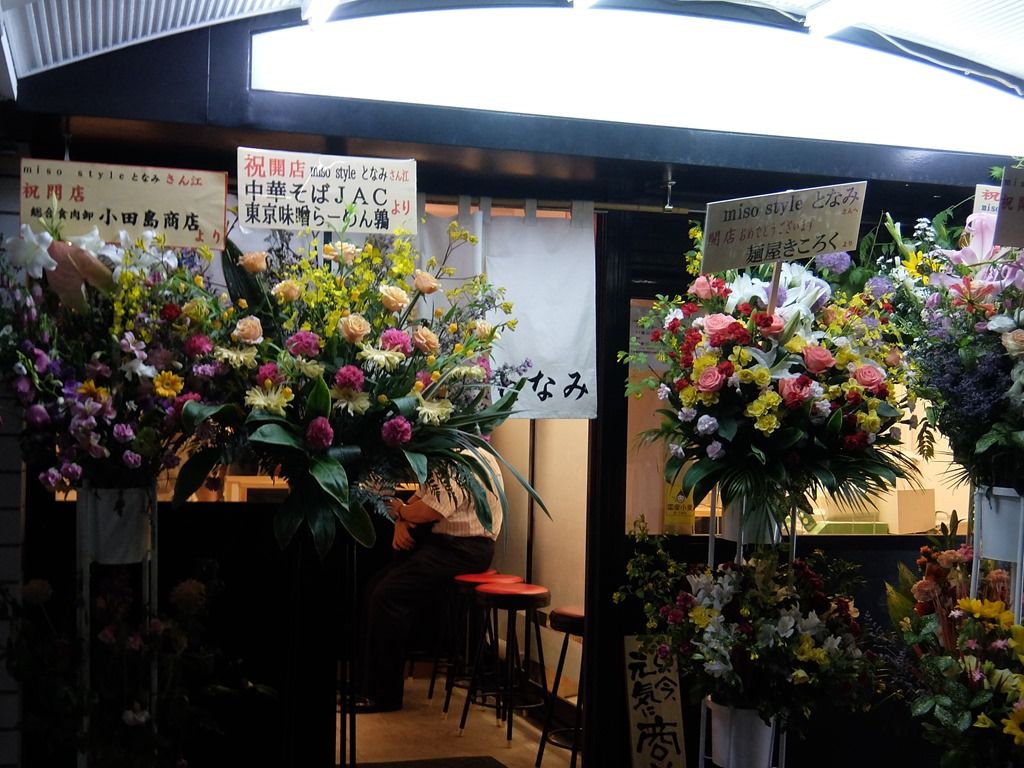 店頭開店祝花は中華そばJACと東京味噌らーめん鶉から、きころくから。