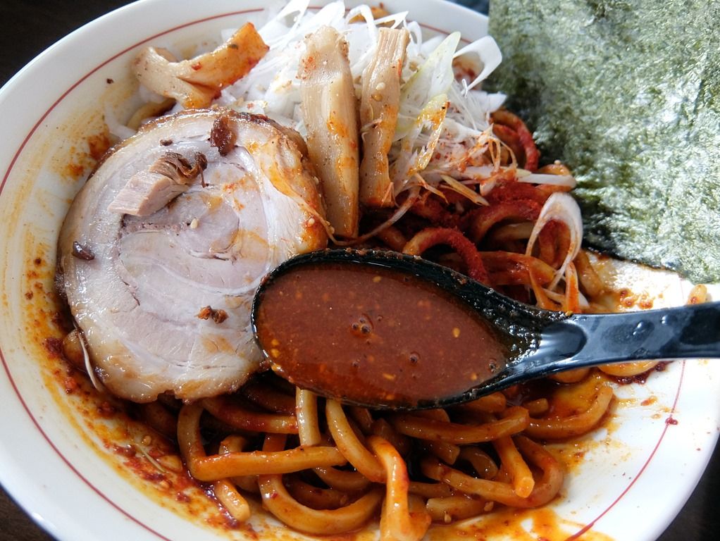 「あつそば」とは、ラーメンよりは汁少なめ、まぜそばよりは汁やや多めの、ラーメンとまぜそばの中間的な創作麺料理。