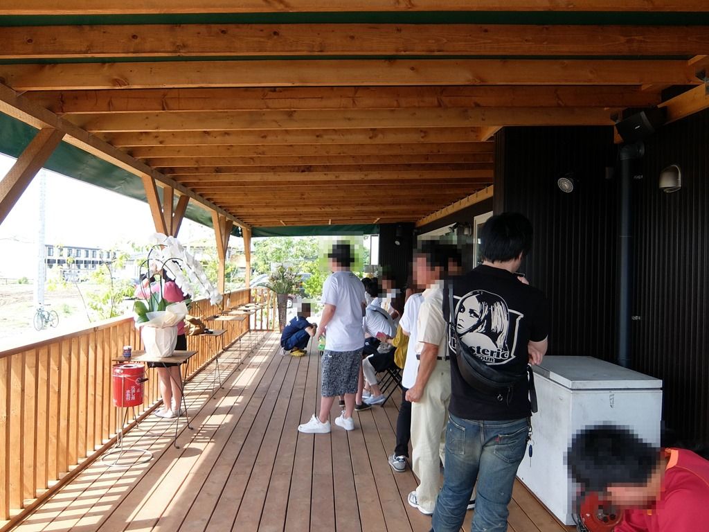 待ちはウッドデッキ上で。