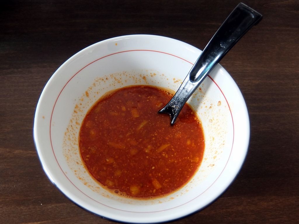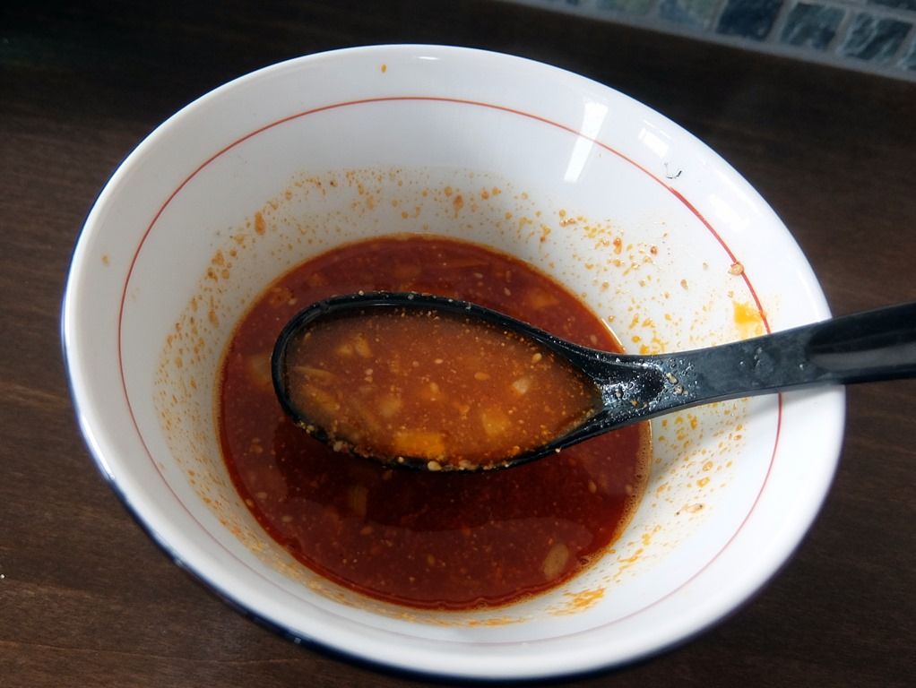 二辛でもスープは真っ赤で、結構な量の唐辛子パウダーがかかってます。