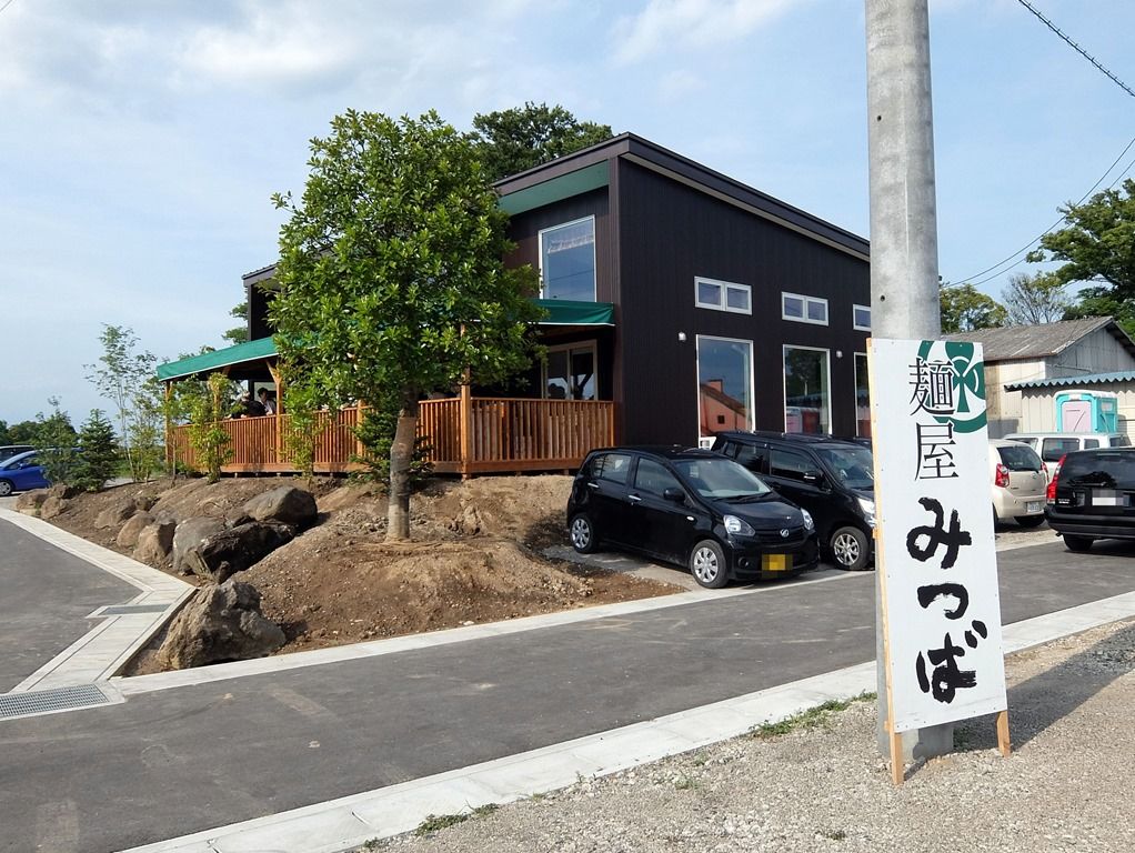 駐車場の向かう途中には、「麺屋 みつば」の立看板。