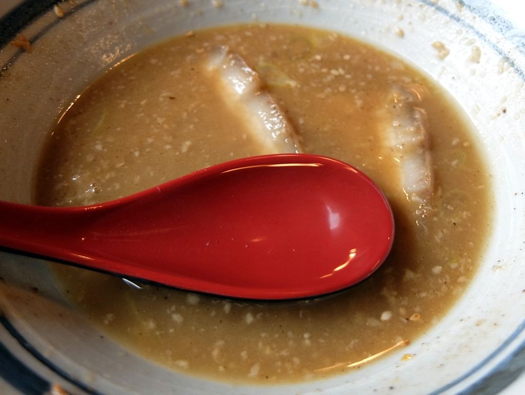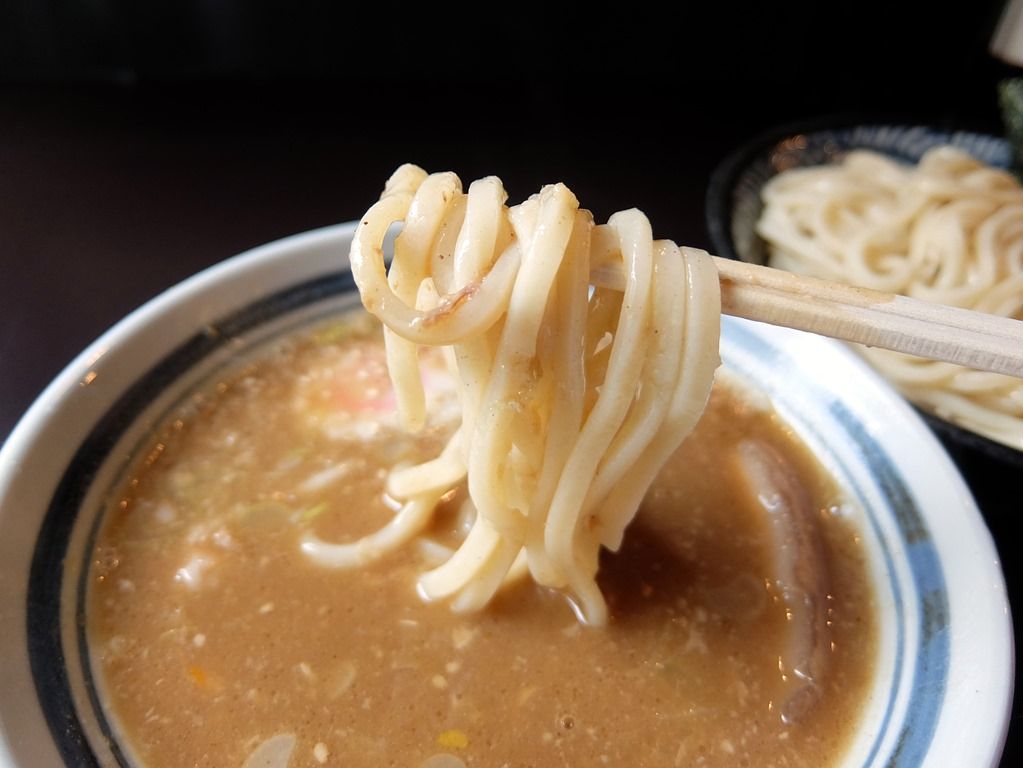 トリプルスープというつけ汁は、動物性というか豚骨主体な感じ。 もっさりした味わいで、悪くはないですが途中で飽きが来ます。