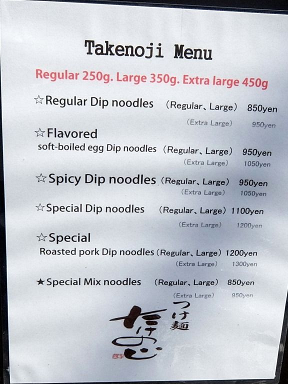 2015年6月10日、早稲田の新店「つけ麺 たけのじ」へ。