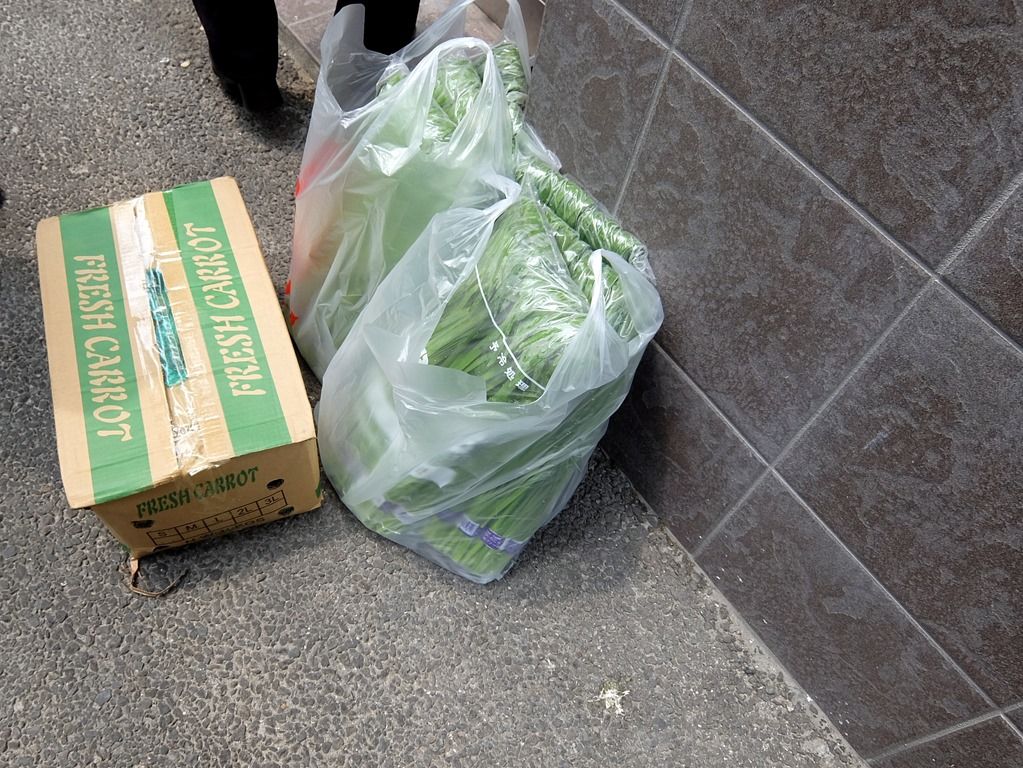 入口脇の路上には、にんじんとニラが無造作に置かれているという(^_^;)
